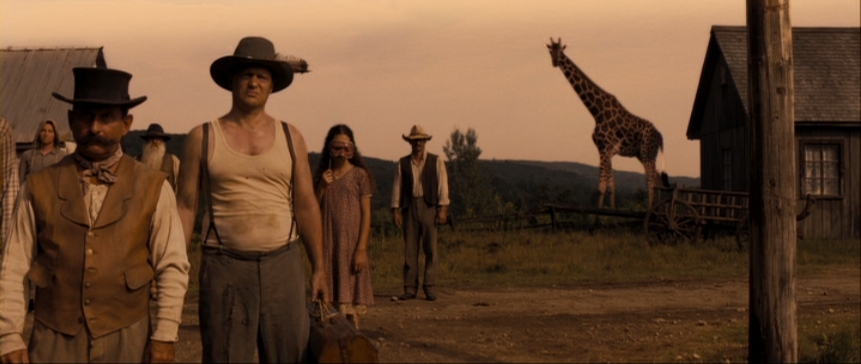 One of these is Going to Acapulco performed by Jim James with Calexico, one of my favorite songs from The Basement Tapes. I remember feeling chills down my spine when I first heard this in the movie theater. Richard Gere as Billy the Kid, drawn from Dylan’s part and soundtrack from the Sam Peckinpah classic, is leading his horse through a western mountain town of the post civil war years. He encounters a very eclectic crowd strolling through a bewildering backdrop including an ostrich, a gentleman on stilts, a single mother and her children being robbed, and a lone giraffe casually appearing from behind a house – perplexingly, not at all seeming out of place.